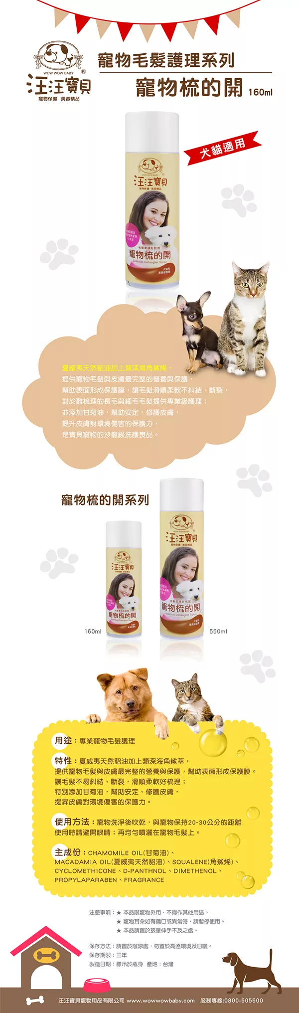 【愛不釋手】汪汪寶貝梳的開 160ML (梳毛油)+寵物香浴粉150G+寵物眼周清潔濕巾30抽